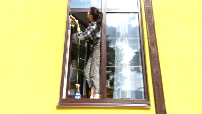 Ouvrez grand les fenêtres pour laisser l’air circuler et sécher plus rapidement les surfaces après nettoyage. Inspectez les cadres pour toute trace de saleté et utilisez une brosse à poils doux pour déloger les particules indésirables. Une fois cette étape complétée, fermez hermétiquement fenêtres et portes pour éviter les courants d’air durant le nettoyage.